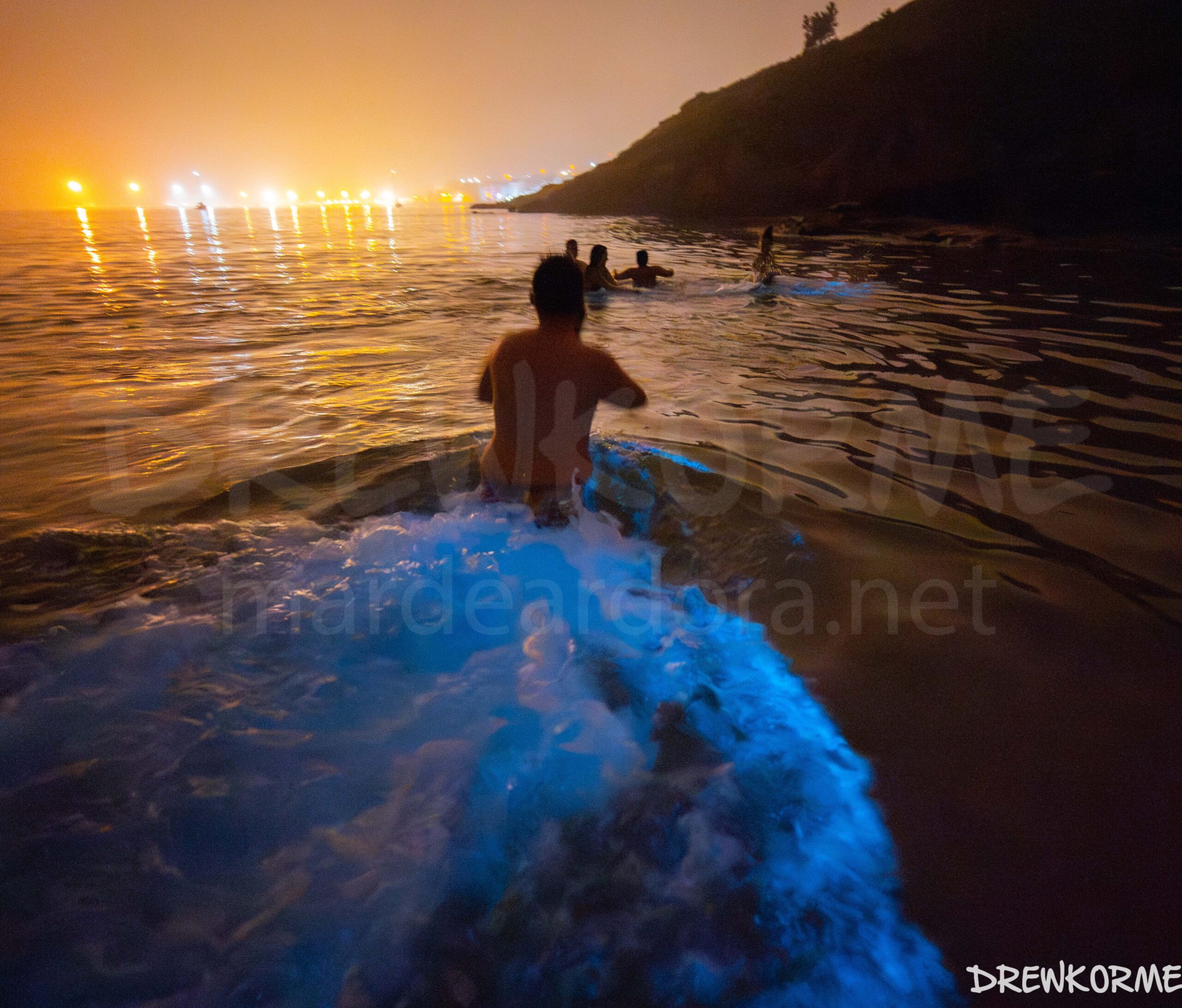 Durante determinadas noches, el mar parece encenderse con destellos de luz azulada o verdosa cada vez que una ola rompe, el agua se agita o alguien entra en contacto con ella.
